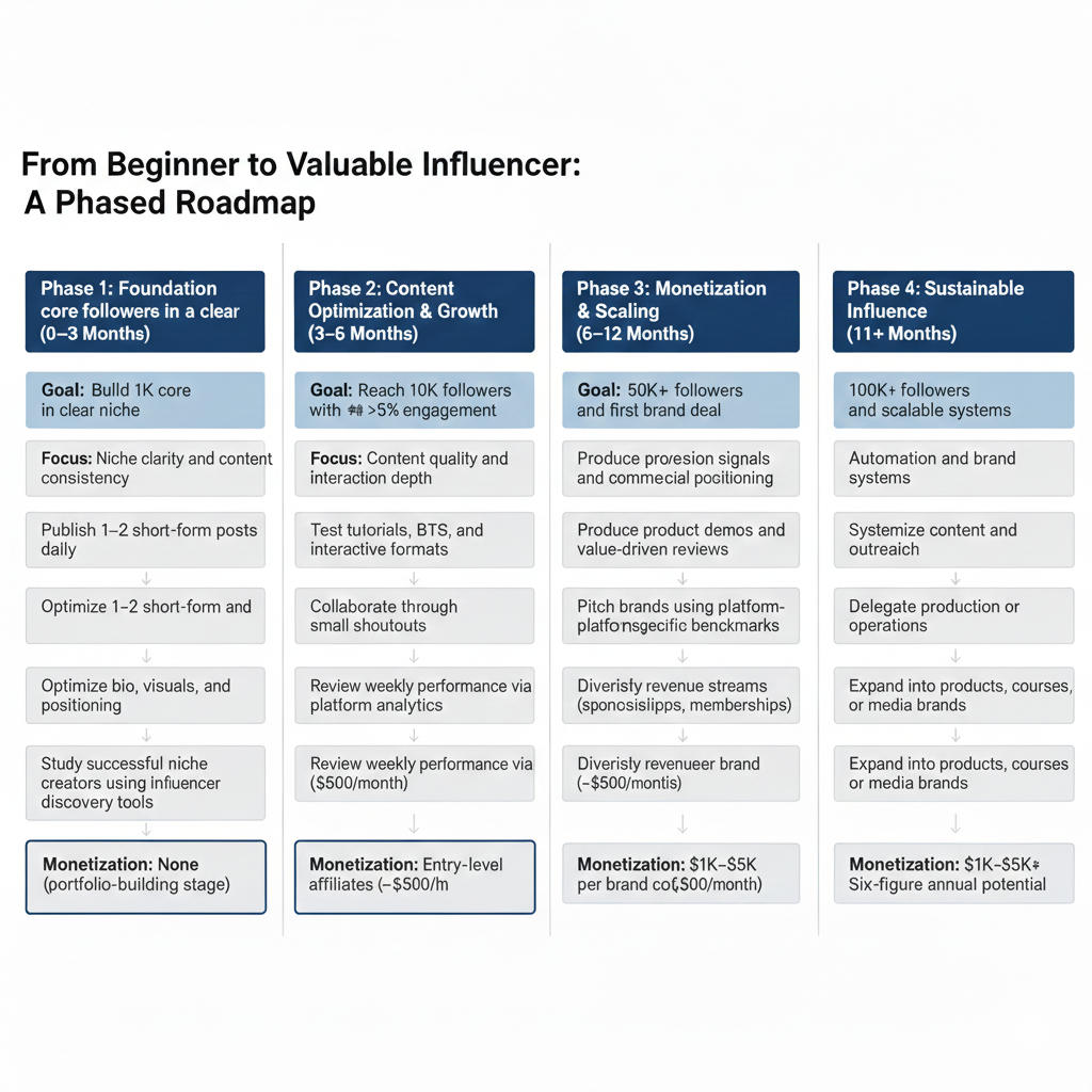 From Beginner to Valuable Influencer: A Phased Roadmap with Actionable Steps